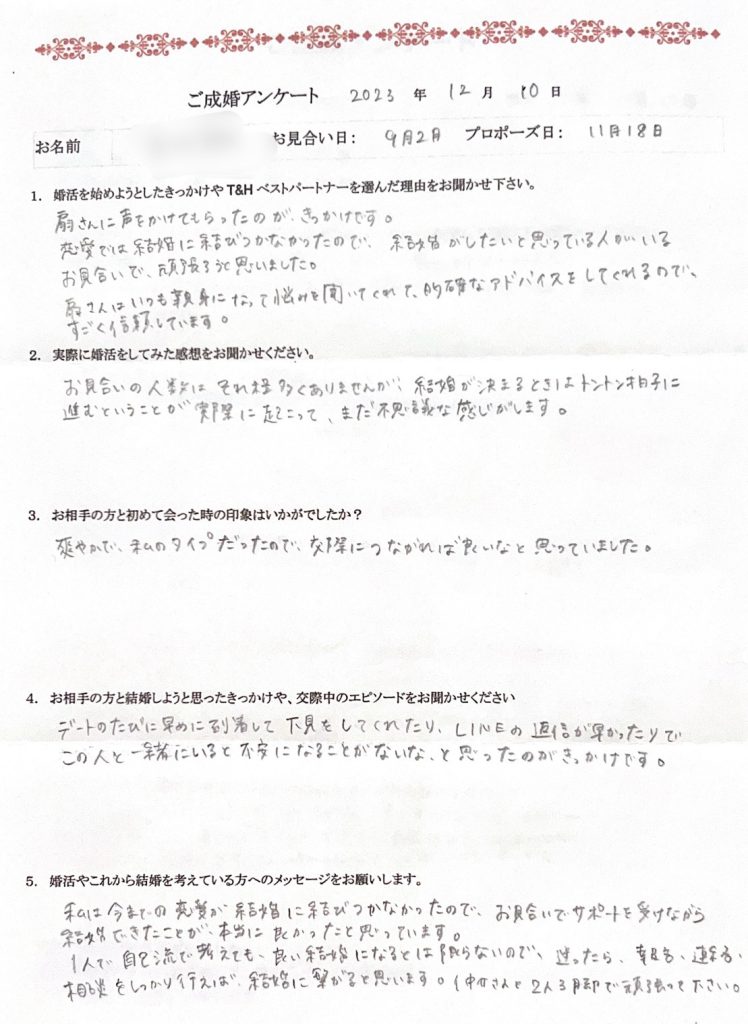 ご成婚アンケートをいただきましたのでぜひご覧くださいね!